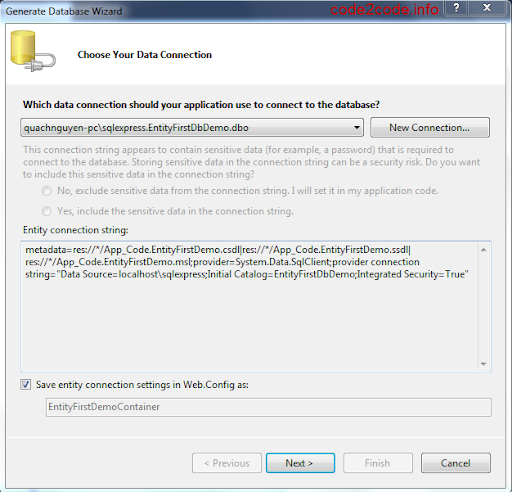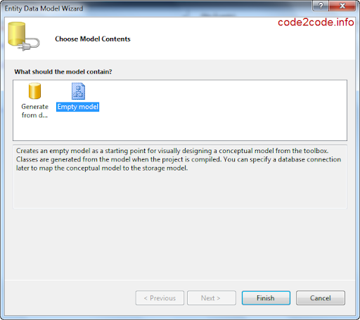 Hộp thoại kế tiếp xuất hiện yêu cầu chúng ta chọn data từ csdl có sẳn hay entity data model rỗng.