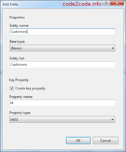 Ở đây mình named là Customers và khoá chính là id kiểu Int32 Click OK để tiếp tục.